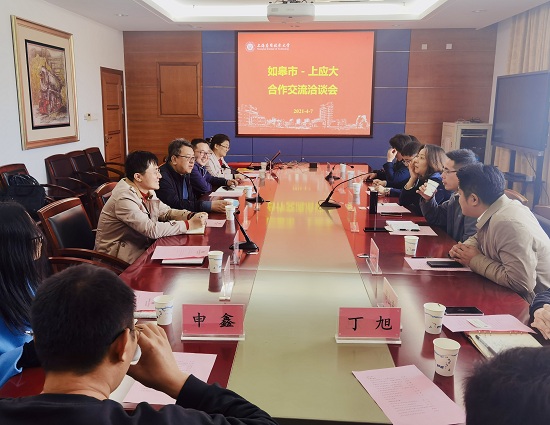 韩生对林文美一行来访表示欢迎,介绍了我校建校历史、办学定位、学科布局、人才培养、科学研究、发展愿景,着重介绍了学校近年来科研工作各项成就及推进长三角地区产学研合作所取得的丰硕成果。韩生表示,学校一直秉承“依产业而兴,托科技而强”办学理念,坚持“协同创新,共创价值”发展理念,注重产学研融合创新。学校与如皋共建产学研工作站以来,双方一直保持密切合作,每年与如皋市合作的产学研项目稳居上海市各高校前列,是我校潜心研究服务产业发展的应用技术和创新成果转移转化的生动体现。