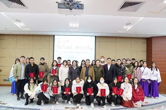 12月30日晚,由校党委学工部主办、人文学院承办“寻根四史印迹,传颂诗词美韵”第十二届经典诗词诵读会暨第四届诗词文化节闭幕式举行,人文学院院长刘红军,党总支书记周文,党总支副书记、副院长徐津津等出席,近百名学生代表参与活动。