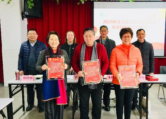 会上举行了校关工委新老特邀党建组织员欢迎及欢送仪式,相关负责人向赵增绶、唐桂玲、林梅等特邀党建组织员颁发感谢信,向华容、卢康道、童爱芬等新任特邀党建组织员颁发聘书。新老特邀党建组织员交流了年度工作总结与经验体会,推选了2020年度校“优秀特邀党建组织员”。