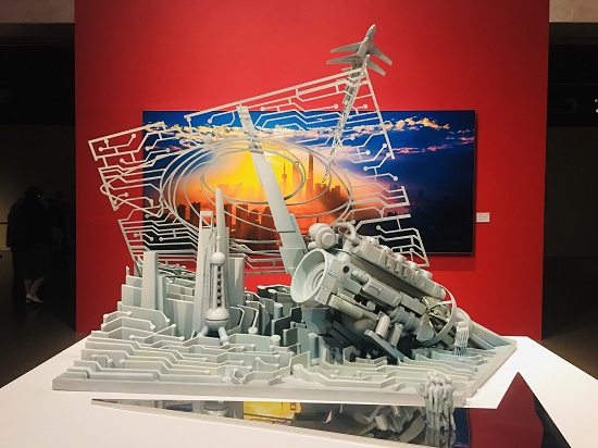 该艺术展分为“改革巨变”“时代奋斗”和“人民城市”三个篇章,展厅内陈列了反映重大国家战略印记的绘画、摄影、雕塑和装置艺术,也有体验城市发展变革的多媒体互动场景,还有凸显人民美好生活的情景式演绎和直播展示等,多维度展示上海浦东的巨大变化。