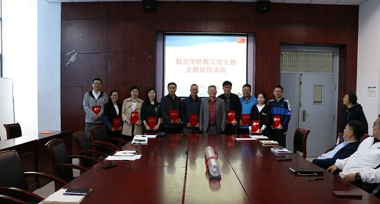 轨交学院党总支书记李文举向疫情期间捐款的教工党员发放了中共中央组织部印制的新冠肺炎期间捐款收据。他表示,党员教师无私奉献、自发踊跃捐款,充分发挥了党员先锋模范作用,以实际行动践行了初心与使命。