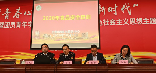 11月3日,学校举行2020年食品安全培训会,海湾旅游区市场监督管理所所长高扬,组长吴光晶受邀作培训讲座。校后勤保障与服务中心主任杨军、直属党支部副书记(主持工作)刘爱玲、副主任李德培及各食堂关键岗位工作人员参加培训会,后勤保障与服务中心副主任饶婷主持。
