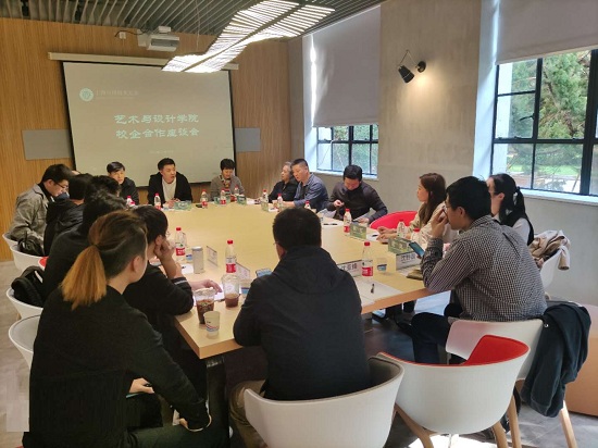 10月30日,艺术学院召开了校企合作座谈会。副院长史争光及各系主任参会,华建集团环境设计研究院、上海市园林设计研究总院有限公司、上海巧议网络科技有限公司、上海岸谷工业产品设计有限公司等家企业专家代表应邀出席,共同探讨搭建应用创新型设计人才培养平台、创新人才培养模式等问题。