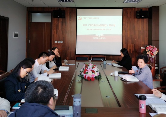 10月30日,马克思主义学院直属党支部第一党支部举行学习《习近平谈治国理政》(第三卷)主题党日活动,校党委副书记宋敏娟出席并讲话,从历史逻辑、理论逻辑和实践逻辑三个方面分享了《习近平谈治国理政》第三卷的学习体悟。她指出,当今世界面临百年未有之大变局,变局中危和机同生并存,这给中华民族伟大复兴带来重大机遇,深圳经济特区成立40周年和浦东开发开放30周年的伟大历史实践深刻注解了“斗争精神”的历史逻辑,我们一定要在斗争中坚持发展中国特色社会主义,做到在各种重大斗争考验面前“不畏浮云遮望眼”,“乱云飞渡仍从容”。