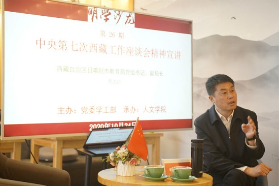 10月24日,学校举行“明学沙龙”活动,邀请西藏自治区日喀则市教育局党组书记贾志红来校宣讲中央第七次西藏工作座谈会精神,帮助西藏籍学生学懂弄通中央第七次西藏工作座谈会精神,做到学有所思、学有所悟、学有所得、学以致用。本次沙龙由人文学院承办。