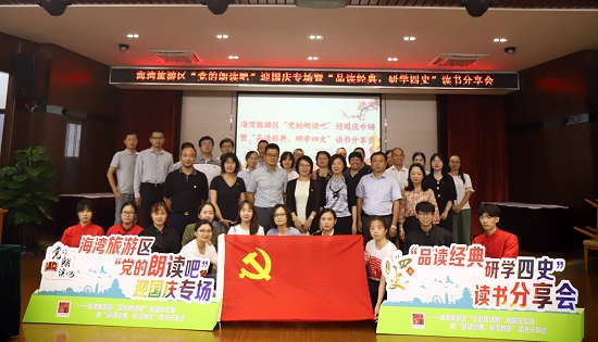 9月15日下午,人文学院与海湾旅游区共同举办“党的朗读吧”暨“品读经典,研学四史”读书分享会,海湾旅游区党工委副书记、管委会主任姚红,党工委副书记周金华、人文学院党总支书记周文,党总支副书记、副院长徐津津,师生代表及海湾旅游区基层党组织代表参加活动。