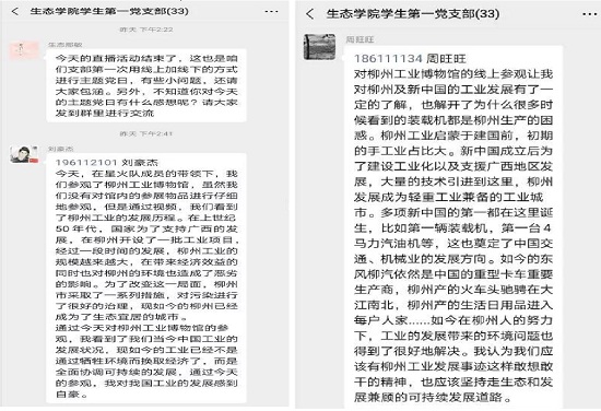 直播中,“星火队”成员详细介绍了柳州工业博物馆的各个展馆内容及部分展品背后的故事,表示通过参观,更深入学习了“四史”、知史爱党、知史爱国,增强历史责任感、培养民族自豪感,提高自身的思想觉悟,明确前进道路险阻,艰苦奋斗,砥砺前行。直播活动让支部党员们以“云体验”方式走进柳州工业博物馆,以柳州的工业发展作为中国工业发展史的缩影来向同学们展现中国制度变化对少数民族地区社会进步的影响,了解中国工业在中国共产党的领导下,柳州工业100多年来的发展历程,感悟艰苦奋斗、自主创新的“柳州精神”,学习了广西及中华民族复兴的历史,真切地感受到柳州人民艰苦创业、敢为人先、自强不息、实业兴邦的精神。