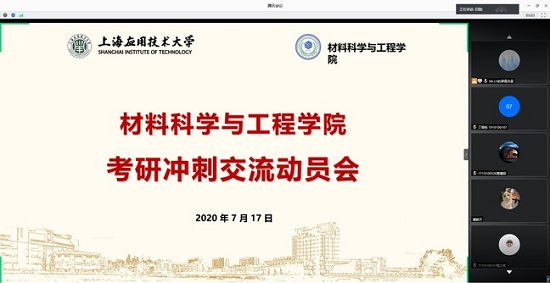 7月17日,材料学院召开2021届毕业生考研冲刺线上动员会,研究生院副院长叶璟应邀为2021届毕业生做冲刺动员宣讲。学院副院长田甜、2021届毕业班辅导员及全体2021届考研毕业生参会。