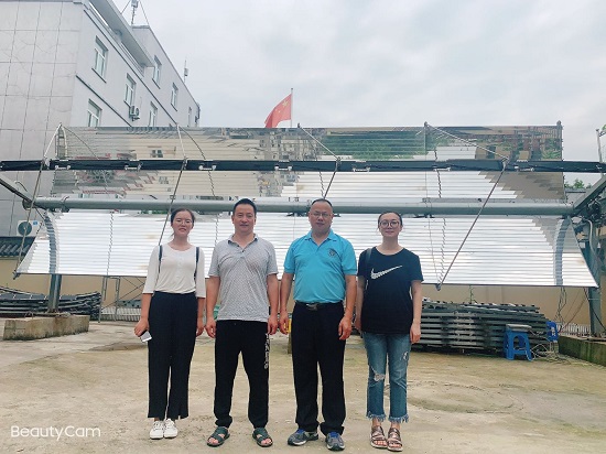赵长虎陪同我校教授参观了“新能源基地”现场,随后双方就如何真正做好“校协同创新基金”项目进行详细交流,并现场使用太阳辐射仪、红外热成像仪、测温仪等仪表对现有聚光型太阳能热电联供系统上的太阳能电池板等的热辐射、温度等进行测试、分析和讨论。双方确定,接下来将安排研究生驻公司现场开展连续系统测试实验分析,公司同时承诺在学校允许情况下免费在我校搭建小型“聚光型太阳能热电联供”试验平台,以便更深入地开展校企合作事宜。