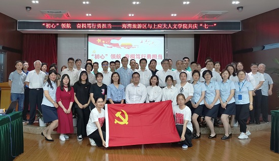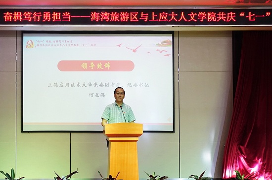 6月29日,人文学院与海湾旅游区党工委共同开展“初心领航 奋楫笃行勇担当”迎“七一”主题活动。校党委副书记、纪委书记何星海出席并讲话。奉贤区委组织部副部长、区社会工作党委书记黄军华,海湾旅游区有关负责人及基层党组织代表,我校人文学院院长刘红军、党总支书记周文,校党委组织员陈方敏,人文学院师生代表参加活动。