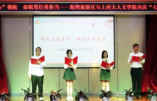 学院师生代表现场开展“迎七一 颂党情 悟初心”经典诵读暨“党的朗读吧”夏季诵读活动。《红船,从南湖游起》合诵回顾了建党以来走过的峥嵘岁月和辉煌成就,也借此向伟大的中国共产党献上祝福。合诵《同忆上应岁月,共创美好未来》,讲述了学校牢记“立德树人”根本使命,以及“厚德精技 追求卓越”工程师文化培育人才所取得的成绩。