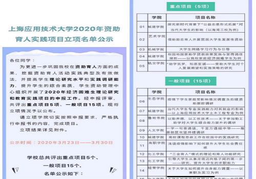 为更好地服务家庭经济困难学生成长,引领他们在大学生涯成才成人,学校还组织开展“资助育人理论研究和教育实践项目”,经同学们积极参与、学院审核推荐、学校组织专家评审,最终5个重点课题,15个一般课题获批立项。