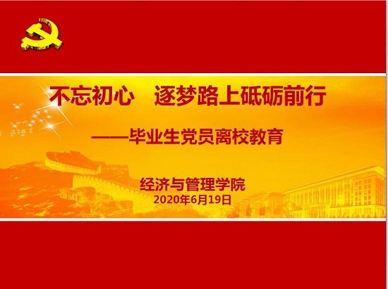 近日,经管学院在2020届毕业生中开展以“党建引领就业,后浪奔涌砥砺前行”为主题的毕业生党员主题教育系列活动,利用在沪部分毕业生临时返校的当天,组织开展毕业生党员离校教育,上好毕业生党员在校期间责任感与使命感教育的最后一课,引导他们进一步强化党员意识,提升党性修养,勉励他们在未来的人生道路上,牢记母校的嘱托和教导,继续以共产党员的标准严格要求自己,充分发挥好先锋模范带头作用,以身作则积极就业,带动周围同学树立正确的就业观和职业观。