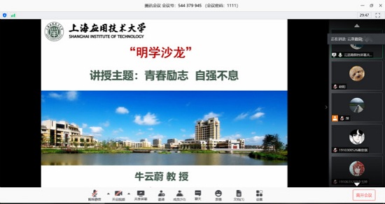 5月20日,学校以“青春励志,自强不息”为主题在线举行第21期“明学沙龙”,原2005届校友、现香料学院研究生导师、上海浦江人才计划获得者牛云蔚教授担任主讲嘉宾。本次讲座由香料学院承办,学校100余名学子在线聆听。
