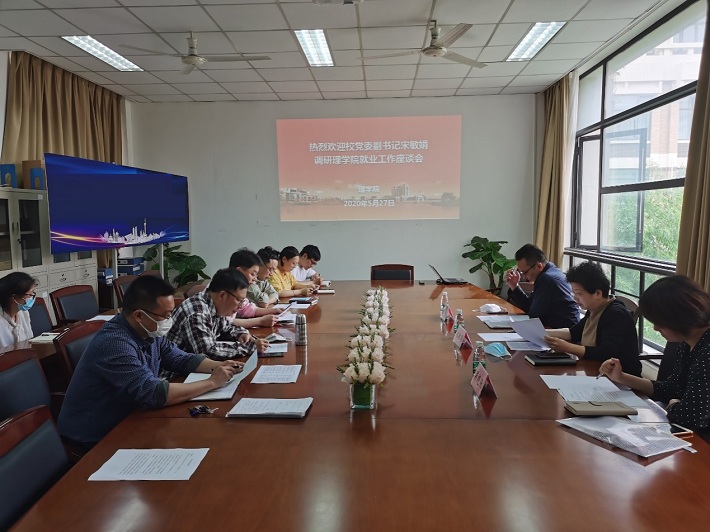 调研会由理学院副院长(主持工作)李以贵主持。学院党总支书记陈勇表示学院将上下一心、共克时艰,全力以赴,保质保量完成就业工作,并对学院教职员工利用各种资源为毕业生提供多种就业渠道和信息、助力学院毕业生就业工作表示肯定。学院副院长徐小明介绍了学院2020届毕业生目前就业现状和学院针对就业工作采取的推进措施。胡洪江、陈进,奚桐等负责就业的专业老师也先后做了交流发言。