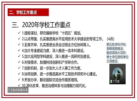 3月21日下午,城建学院召开线上理论学习中心组会议,传达贯彻学校2020年春季干部教师大会会议精神,部署学院2020年工作。学院班子成员,支部书记,系(教研室)、实验室、办公室主任等参加会议。