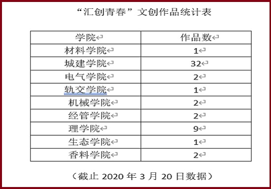 2020年第五届“汇创青春”文化创意作品展示活动作品征集通知出台后,创新学院迅速组织作品征集活动,梳理最新征集作品类型和要求,联络各二级学院,号召上应大广大师生梳理大学生作品成果,利用居家时间继续进行打磨设计,积极报名参赛。截止2020年3月21日,已征集到来自城建学院等9个学院学生作品50余件,并按所涉门类,陆续开展评审工作。