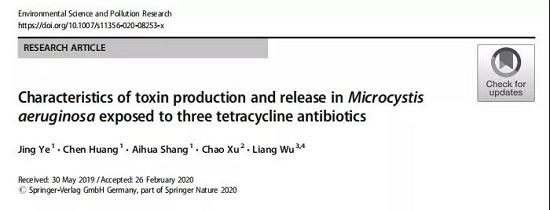 叶璟副教授研究发现水体中存在的低剂量抗生素能对蓝藻产生慢性毒性,干扰蓝藻的正常生长,扰乱蓝藻合成与分泌藻毒素的正常规律,引起更多的藻毒素释放到水体中,对水环境安全造成一定威胁。研究指出,由于抗生素无法被污水处理厂去除,且用量很大,能随地表径流排入地表水并长期持留在水体中,需要引起关注。该研究以题为《Characteristics of toxins production and release in Microcystis aeruginosa exposed to three tetracycline antibiotics》的论文发表在Environmental Science and Pollution Research(三区)期刊上。