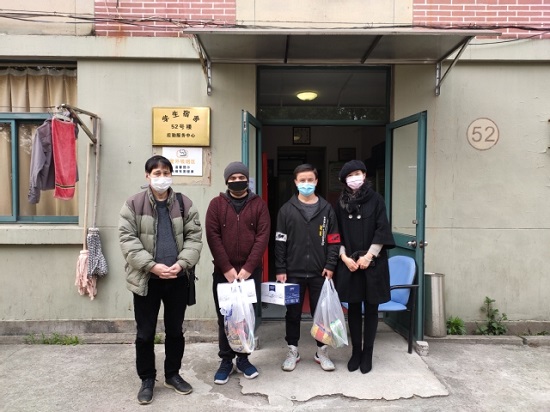 3月6日,高职学院党总支书记卢康道,总支副书记、副院长林娟娟,在学校疫情防控和线上教学齐抓工作中,到学生公寓走访5位留校学生(其中有4名新疆维族学生),了解他们在学习生活上的情况,送上牛奶、方便食品和口罩等物品,叮嘱他们安心留校,在线学习。