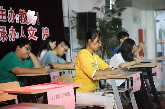 大赛分为初赛和决赛两场。初赛分上下半场,上半场共有4轮,每轮有5道题,采取积分制答错不扣分。选手们自信满满全身心投入比赛,比赛间隙,由汉服社带来的舞蹈《浪人琵琶》,让选手们感受到了古典舞的婀娜多姿。随着美妙动人的舞曲结束,上半场的比赛结果随之公布,最终积分靠前的六个学院进入下半场的比赛中。经过一番对决,伴随着民乐社带来的长笛古筝合奏《春到湘江》悠扬的曲调,下半场比赛结果揭晓,计算机学院与外国语学院进入了最终的总决赛。经过两轮比拼,最终计算机学院荣获第一名,外国语学院获得第二名,生态学院、城建学院并列第三名。