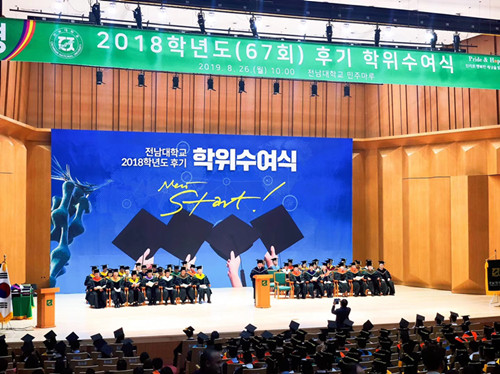 近日,韩国国立全南大学2018届工商管理硕士(MBA)毕业典礼暨授位仪式举行,我校与韩国国立全南大学合作培养的首届中文MBA硕士留学生全部顺利毕业。我校国际教育中心相关负责教师受邀出席,与合作方共同见证了学子们学业有成、为校争光的重要时刻。