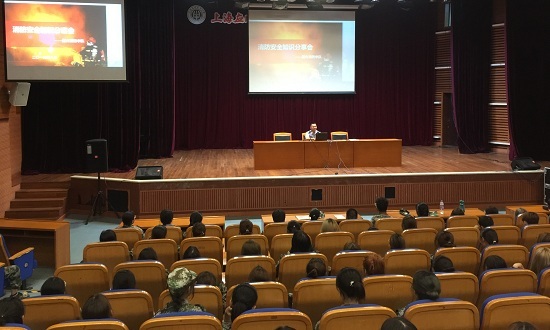 演习前,星火消防中队副队长钱泽宇应邀对全体新生讲授消防安全知识培训课。