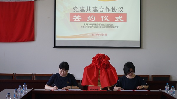 6月5日,经管学院党总支书记王真,总支副书记、副院长杨雪等一行前往南桥镇,同南桥镇机关党总支签署党建共建协议,并举行共建基地揭牌仪式。南桥镇党委委员、镇机关党总支书记罗兰萍及南桥镇党建服务中心主任彭文翌热情接待王真一行。双方就党校师资共享、基层党务工作者培训、课题研讨、统战工作推进、志愿者进社区等方面达成一致,签署了共建协议,并揭牌成立了区域化党建合作基地,选拔聘任经管学院分党校第一批校外讲师团8人,王真向讲师代表颁发聘书。