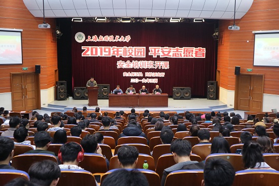 3月29日,校安全保卫处联合奉贤区高校派出所举办2019年校园平安志愿者安全培训班正式开班,来自全校各学院的480余名新志愿者和各学院负责老师参加开班仪式,新志愿者进行了宣誓。