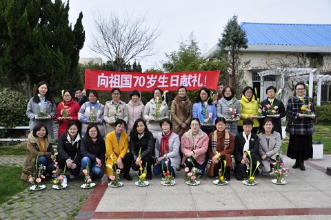 女教师们对插花表现出了极大兴趣,在姜老师的指导下,大家边看边学,修枝剪叶,亲自动手完成了一件件精美的插花作品,看着眼前一盆盆色彩缤纷、形态多姿的艺术品,每个人的脸上都绽开了美丽的笑容,纷纷和自己的花艺作品合影留念。