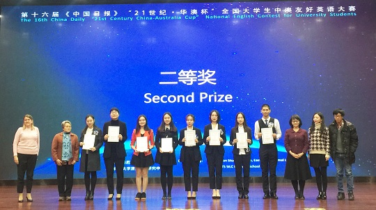 12月15日,第十六届《中国日报》“21世纪华澳杯”全国大学生中澳友好英语大赛举行,我校学生何魏以优异表现获得二等奖,外国语学院教师杨卉获“优秀指导教师”奖。