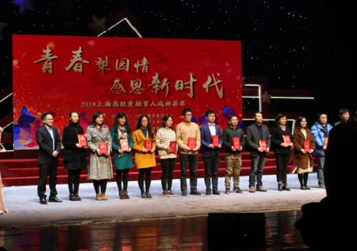 为响应市学生事务中心进一步做好资助育人工作,让中华传统文化走进家庭经济困难学生群体的号召,我校学生资助管理中心,积极组织活动开展,在校内进行大力宣传、组织与策划,鼓励广大应用学子积极参与,被评为优秀组织奖。学工部副部长牛亏环作为学校代表上台领奖。与此同时,我校学子毕文婷,郭孟林分别获得“走进非遗经典,闪耀励志青春”新昆曲优秀观后感二、三等奖。理学院学生邓琴在“励青春,展风采”2018上海高校十佳学生资助中心宣传大使评选活动中荣获“十佳学生资助宣传大使”称号,作为学校代表上台领奖。