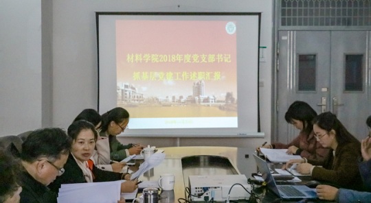 11月23日,材料学院举办2018年度党支部书记抓基层党建工作述职评议大会,校党委组织部特别代表邢敏,校基层党建工作督导组薛纭、朱丽娟,学院党组织班子成员、各党支部书记、部分党代表和教代会代表参会。总支书记田怀香主持。