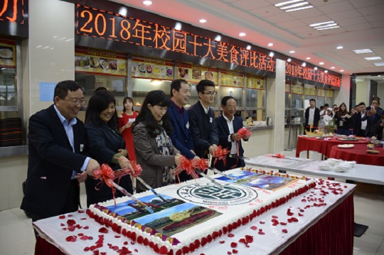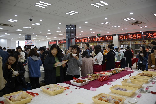 11月15日下午,“2018年校园十大美食评比活动”在校教工餐厅举行,校工会常务副主席张淑梅、后保处长翁德明,宣传部副部长王宏伟、学工部副部长牛亏环,各餐饮公司负责人、各二级学院分工会主席和学生代表等参加活动。活动分为四个部分,分别是:“初见,听闻,心动,体会”四个部分。通过线上和线下两种方式评选“2018年校园十大美食”。线上通过网络投票形式。线下采用自助餐形式,师生们通过观察食之美、型之美,品尝食之味,投票给自己最爱的美食。在餐具发放后,师生们纷纷加入品尝活动,大家都被各种色香味俱全的美食吸引。甜品色泽鲜艳,造型亮眼;早点营养丰富,垂涎欲滴;大灶菜更是飘香十里。现场师生细致品尝,认真打分。评选结果将于近期公布。