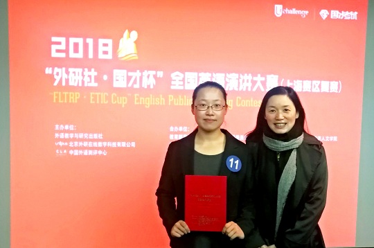 11月5日,“外研社·国才杯”全国英语演讲大赛上海赛区决赛举行,来自复旦大学、同济大学、上海交通大学、华东师范大学等高校选手们同台竞技。经过激烈角逐,我校化工学院田颖同学荣获上海地区特等奖(第二名),并获得了代表上海赛区进京参加全国总决赛的资格,其指导教师、外国语学院赵晓玲,荣获上海赛区指导特等奖。