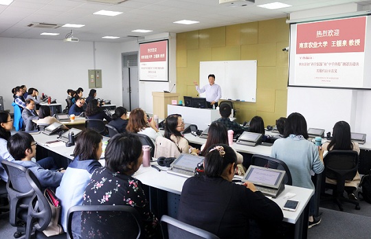 王银泉介绍了自己在对外传播电视新闻翻译、汉英公示语翻译、传教士汉学家翻译与中西文化交流史、中医药翻译史与国际传播、南京大屠杀史料翻译等方面的学术成果和心得体会。随后对外国传教士在华翻译活动及其对促进中西方交流所做的贡献和影响作了系统阐述,论述了耶稣会士奉行的适应性传教路线对于“西学东渐”和“中学西传”翻译活动的兴起和中西文化科技交流活动的促进作用,评价了“中学西传”促进汉学诞生及其现代启示的意义。他表示,中国文化对外传播需要有一个能融通中外的话语体系,一方面应对自身充满自信,同时要了解他人文化,唯有如此,才能构建以合作共赢为核心的新型国际关系。讲座持续了两个半小时,图文并茂,深入浅出,不仅让与会师生对明末清初西方在华传教士在华参与各方面活动的历史有了了解,还对其翻译活动及其翻译观有了更新的认识,在翻译研究方面为师生们拓宽了视野和思路。