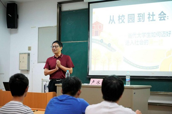 卢冰以自己的大学生活经历开始讲述,对在座的同学们提出建议:一、面向现实社会,逐步明晰未来发展的定位;二、拥有进入社会必备知识能力素质及心理;三、需要有自知之明,要自信但不自傲;四、要以“内化于形,外化于形”八字为言,清楚认识到学识并不等同于文化。卢冰鼓励同学们,明确自我定位,拥有乐观向上的积极态度,学会勤读、勤读、勤悟、勤交、勤跑、勤写、勤修,向自己憧憬的未来前进。讲座后,学子们表示讲座提升了自己参与社会竞争软实力,增强了自己迈进社会的信心。