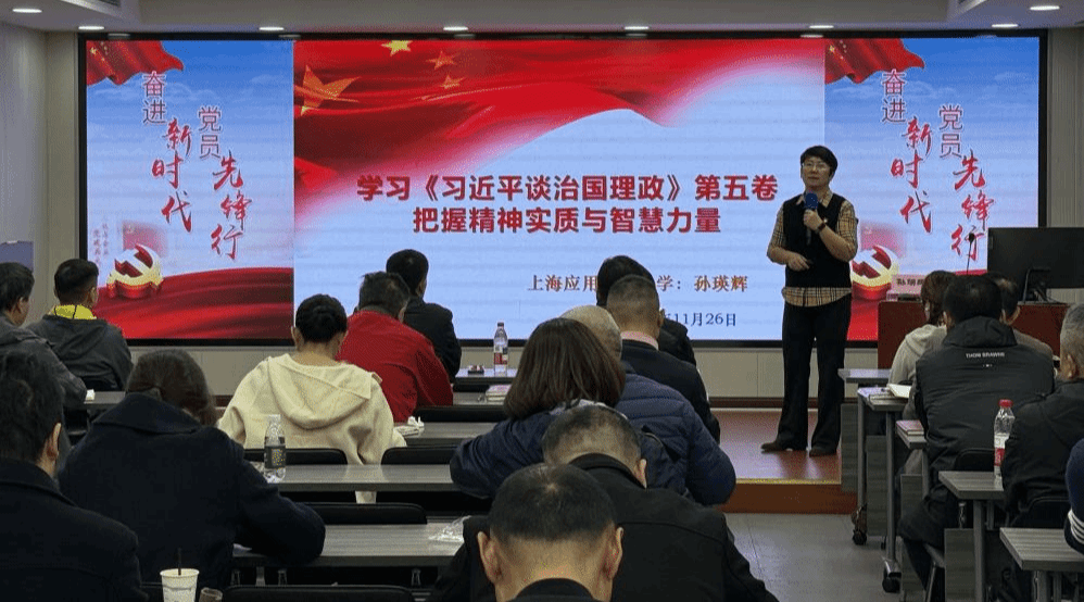 11月26日,马克思主义学院与上药党校联合开展联合备课交流活动,以理论共建推动高校思政课与企业党建深度融合。《习近平新时代中国特色社会主义思想概论》教研室主任孙瑛辉受邀主讲,作了“学习《习近平谈治国理政》第五卷,把握精神实质与智慧力量”专题报告。