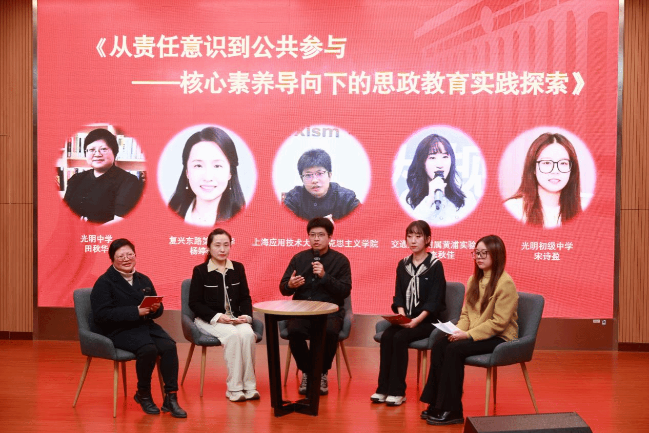 为深入贯彻落实习近平总书记关于思政课建设的重要指示精神,推进大中小学思政课一体化建设走深走实,12月18日,由上海市教师教育学院(上海市教育委员会教学研究室)与外滩学区大中小学思政课一体化建设委员会联合主办的“2025年外滩学区大中小学思政课一体化教学研讨活动”在上海市光明中学举办。马克思主义学院副院长周贇受邀参会,与上海市教师教育学院于漪教育教学思想研究部副部长俞慧文、黄浦区教育学院党总支书记副院长魏薇等学界专家、一线教师代表齐聚一堂,共探思政育人协同创新路径。