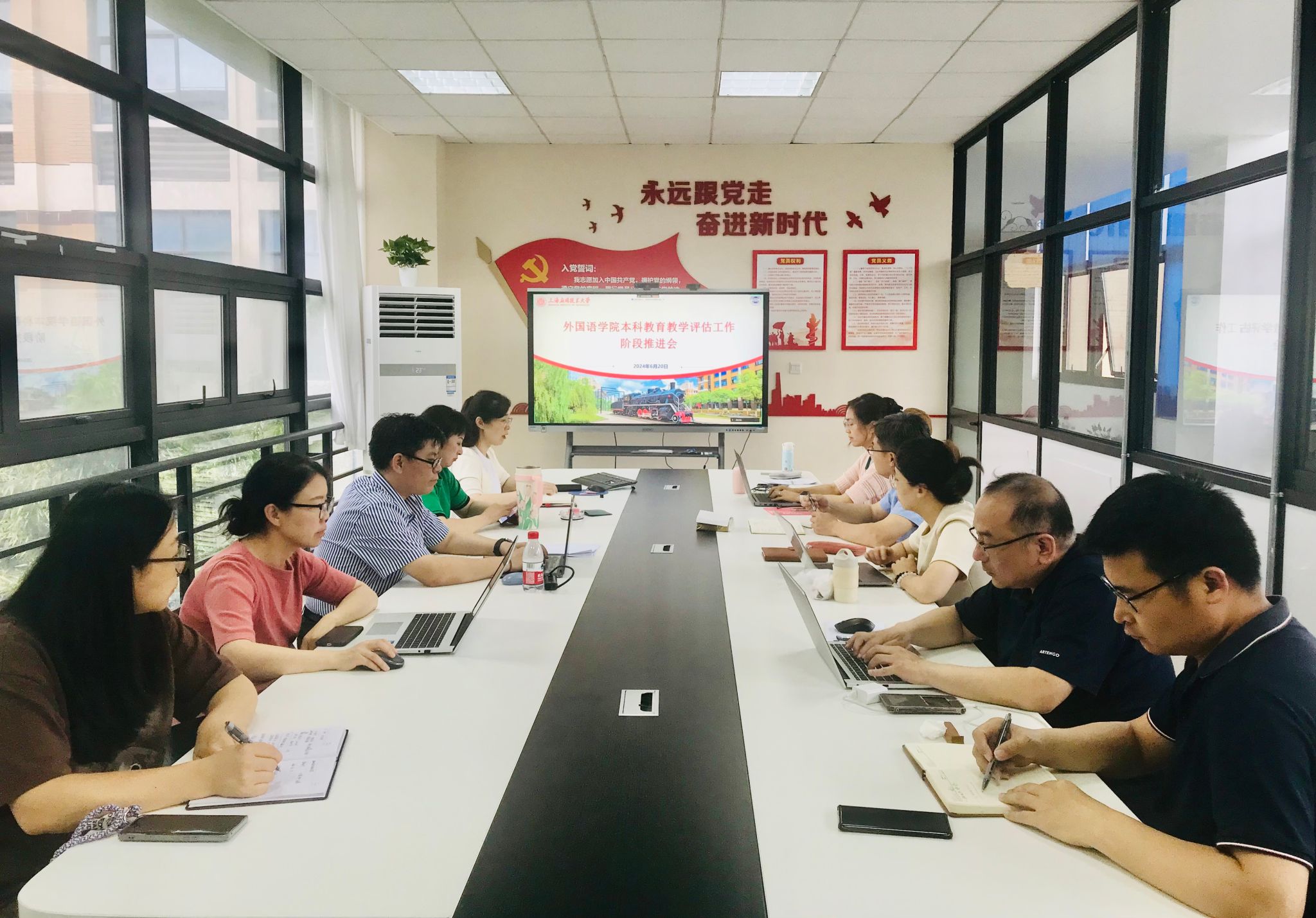6月20日,外国语学院召开本科教育教学评估工作阶段推进会,总结前一阶段评估工作的成果,分析存在的问题,并部署下一阶段的工作重点。外国语院长潘智丹、科研主管叶湘,各专业负责人、系部主任、实验中心负责人、教学管理人员等参加了此次会议。会议由外国语学院教学主管迟娟主持,