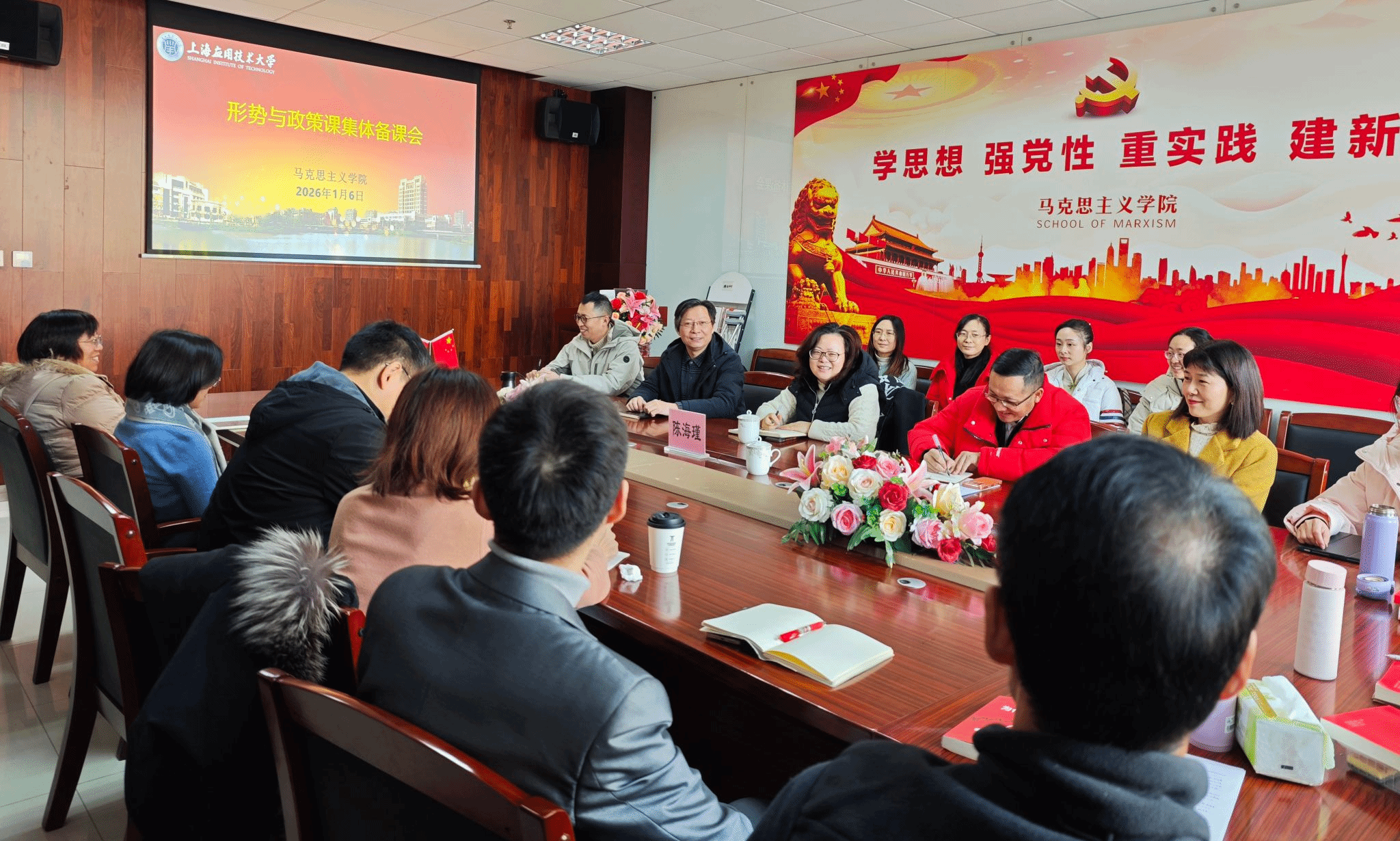 为深入学习贯彻党的二十届四中全会精神,推动党的创新理论进教材、进课堂、进头脑,近日,马克思主义学院形势与政策教研室召开集体备课会。校党委副书记陈海瑾出席,马克思主义学院班子成员、形势与政策教研室全体教师参与学习。
