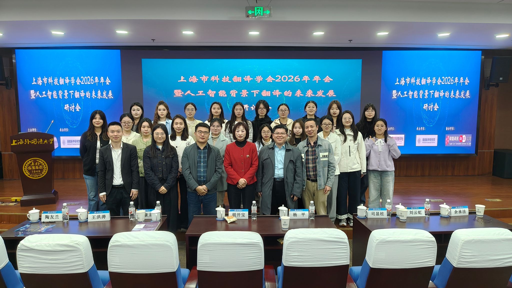 4月11日,上海市科技翻译学会2026年年会暨“人工智能背景下翻译的未来发展研讨会”在上海外国语大学举行。外国语学院院长潘智丹率队参加活动。