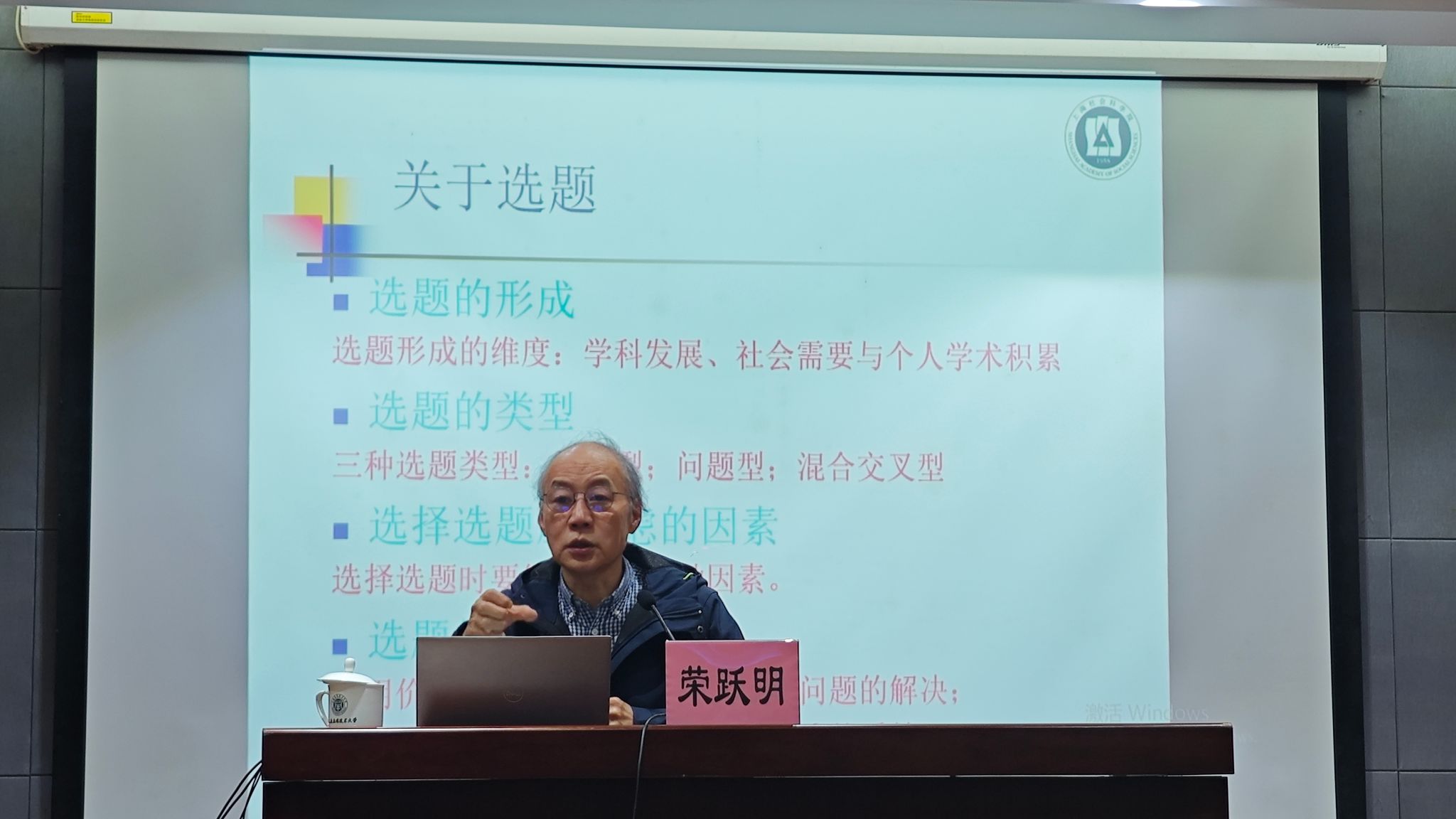 11月7日,马克思主义学院举行“2026 年度国家社科基金申报启动暨专家指导讲座”。活动特邀原上海市哲学社会科学规划办公室主任、上海社科院文学研究所所长荣跃明教授担任主讲,学院科研骨干、青年教师及研究生代表参与本次活动。马克思主义学院党总支副书记牛亏环主持会议。