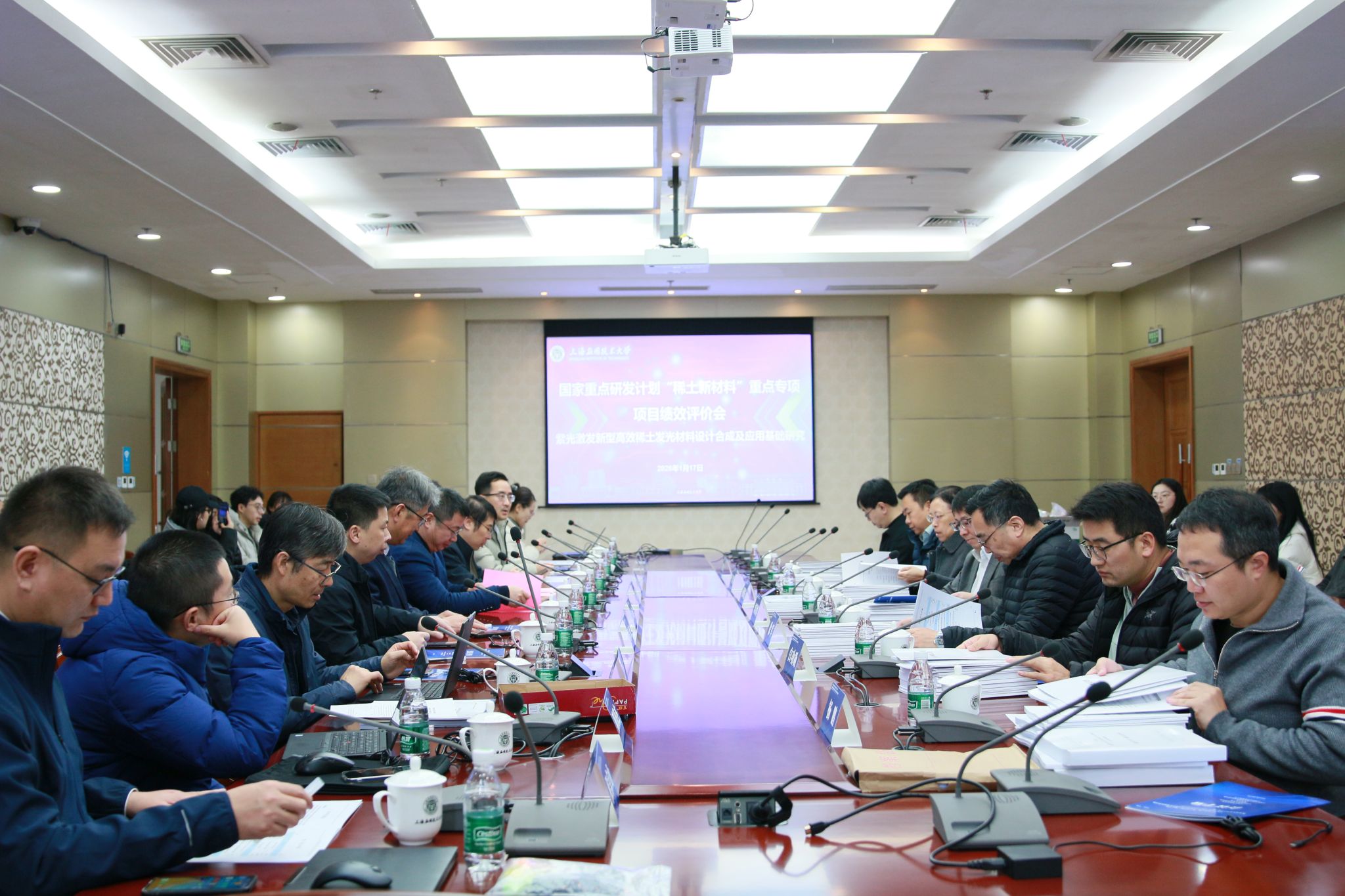 1月17日,由学校牵头实施的国家重点研发计划项目“稀土新材料”重点专项“紫光激发新型高效稀土发光材料设计合成及应用基础研究”项目课题绩效评价会议召开。副校长王占勇出席会议,科学技术研究院院长杜永、专家组长北京大学孙聆东教授主持。有研稀土新材料股份有限公司总经理刘荣辉教授、中国科学院福建物质结构研究所朱浩淼研究员、同济大学徐军教授、中国科学技术大学段昌奎教授、中国计量大学白功勋研究员及北京中创京安咨询有限公司高级会计师杨鹏等项目责任专家、专项专家、财务专家及项目负责人兼首席科学家、材料技术学部主任房永征教授,各课题负责人及项目骨干成员等参加了会议。