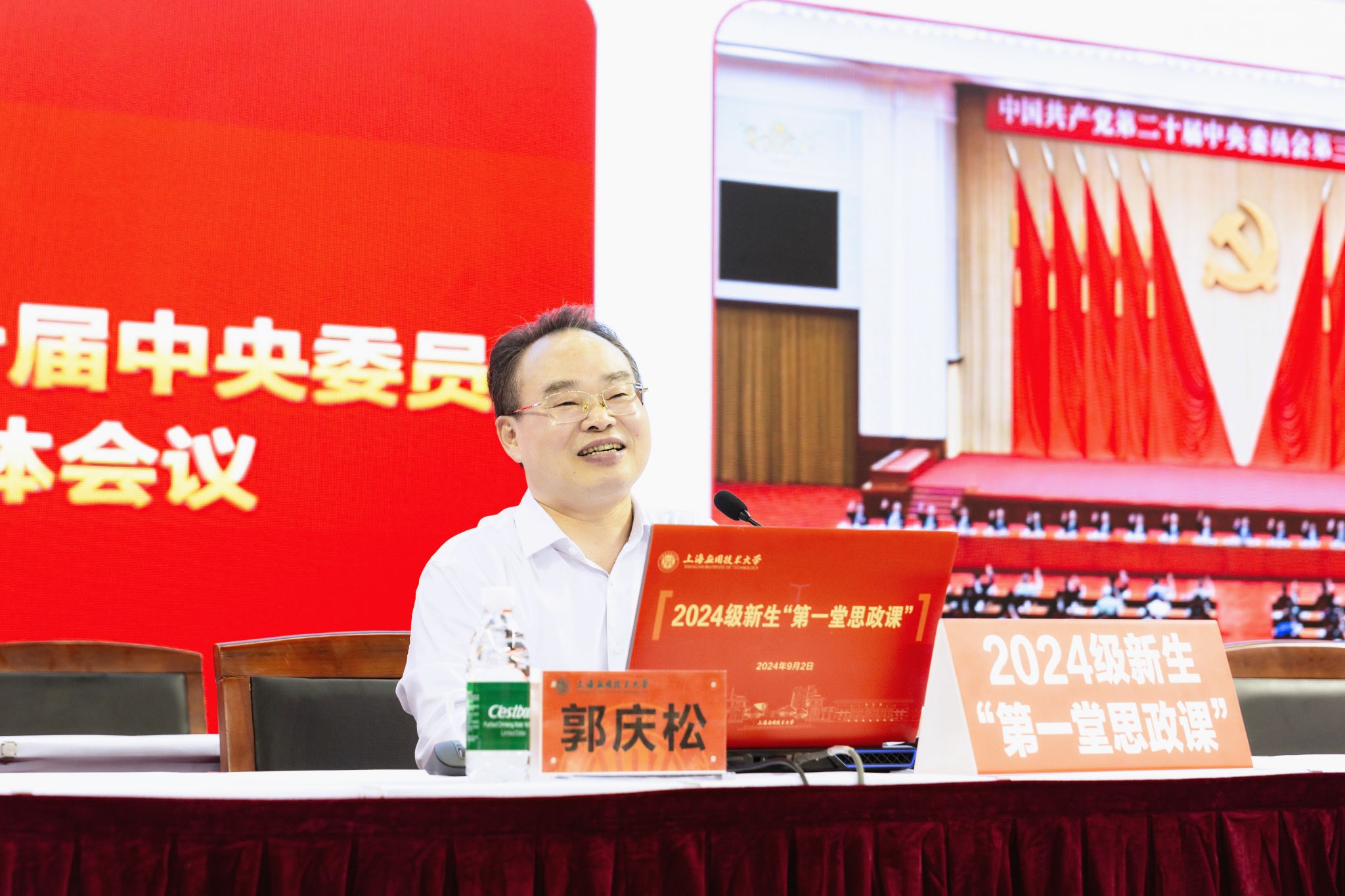 围绕“闪耀真理光芒:紧紧围绕推进中国式现代化进一步全面深化改革”和“赓续七秩荣光:砥砺奋进共创高水平应用创新型大学建设新辉煌”两大篇章,郭庆松以党的二十届三中全会精神和学校办学七十载奋斗历程为教材,“上接天线、下接地线”,殷切寄语广大新生不负青春韶华,厚植人生发展的高度、宽度和厚度,做有家国情怀的上应人。