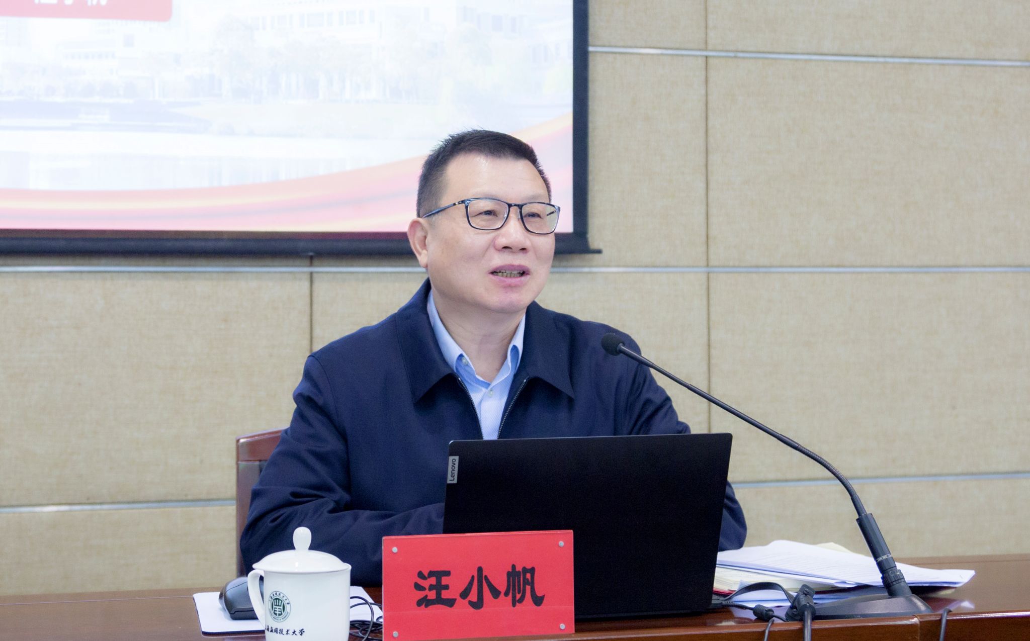 全国政协委员、校长汪小帆以《凝心聚力开新局》为题作专题报告。校党委书记、党委理论学习中心组组长郭庆松主持学习会。