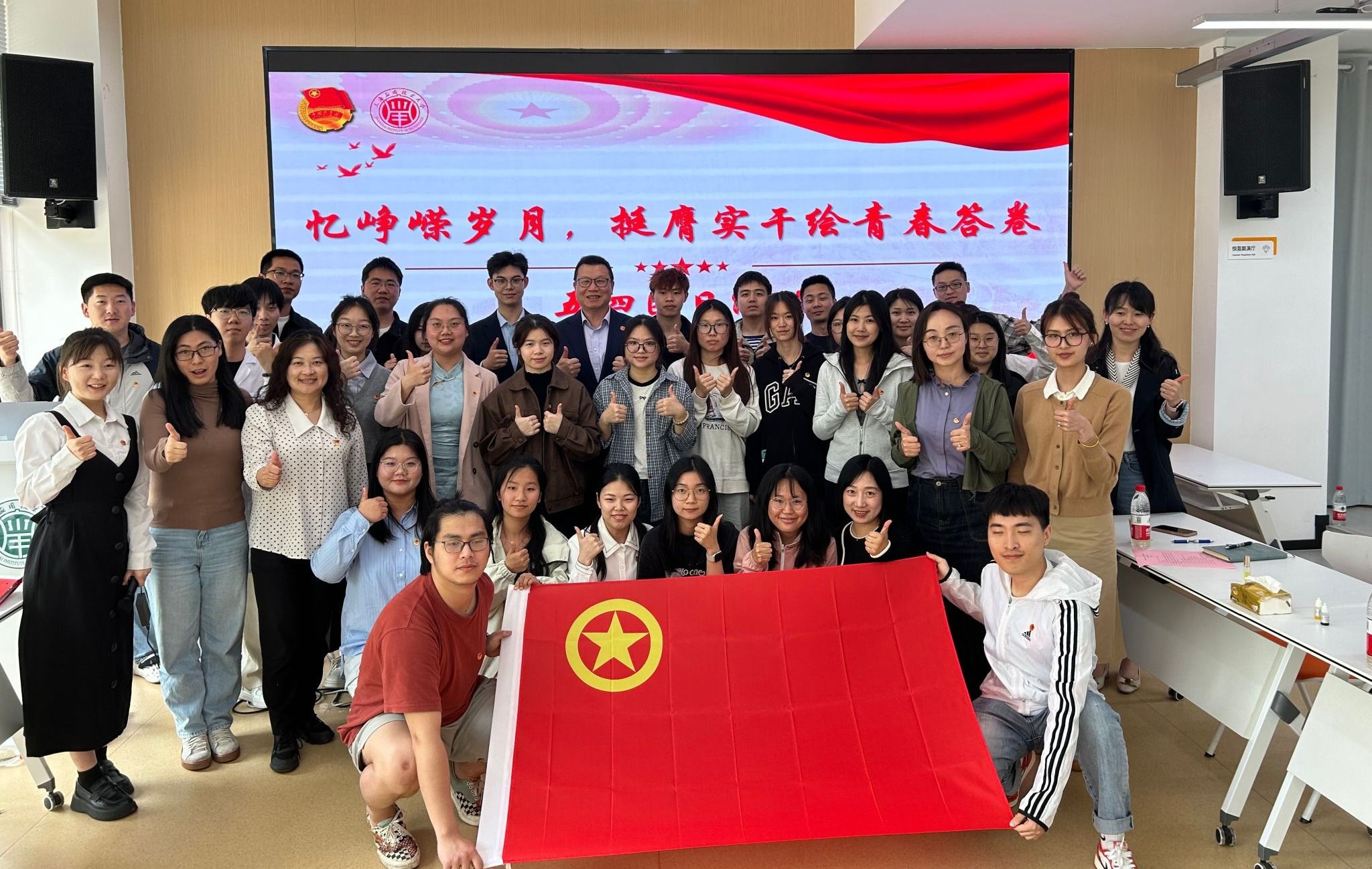 为深入学习贯彻党的二十届三中全会精神,深入贯彻落实习近平总书记关于青年工作的重要思想和习近平总书记考察上海重要讲话精神,纪念五四运动106周年,传承和弘扬五四精神,五四青年节前夕,上海应用技术大学举行“青春为中国式现代化挺膺担当”五四集中主题团日活动,在团支部、“一站式”学生社区展团旗、亮团徽、唱团歌,共同书写新时代青春篇章。