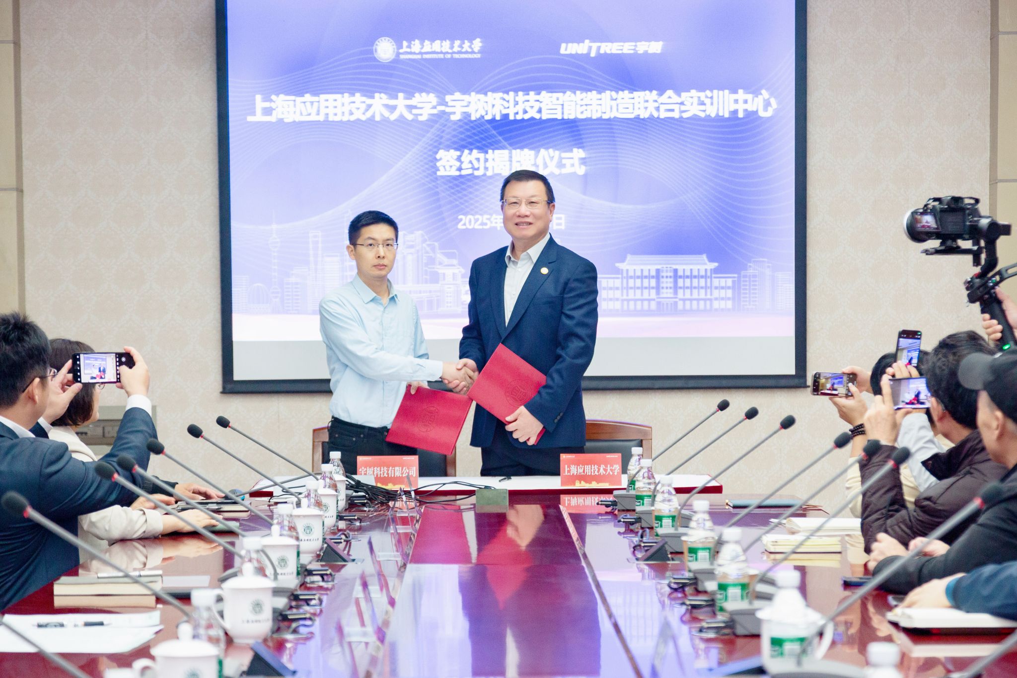 秋阳正好,暖意融融。在师生们的见证下,上海应用技术大学校长汪小帆与宇树科技股份有限公司创始人、CEO王兴兴共同签署了《上海应用技术大学—宇树科技应用型人才培养战略合作协议》。