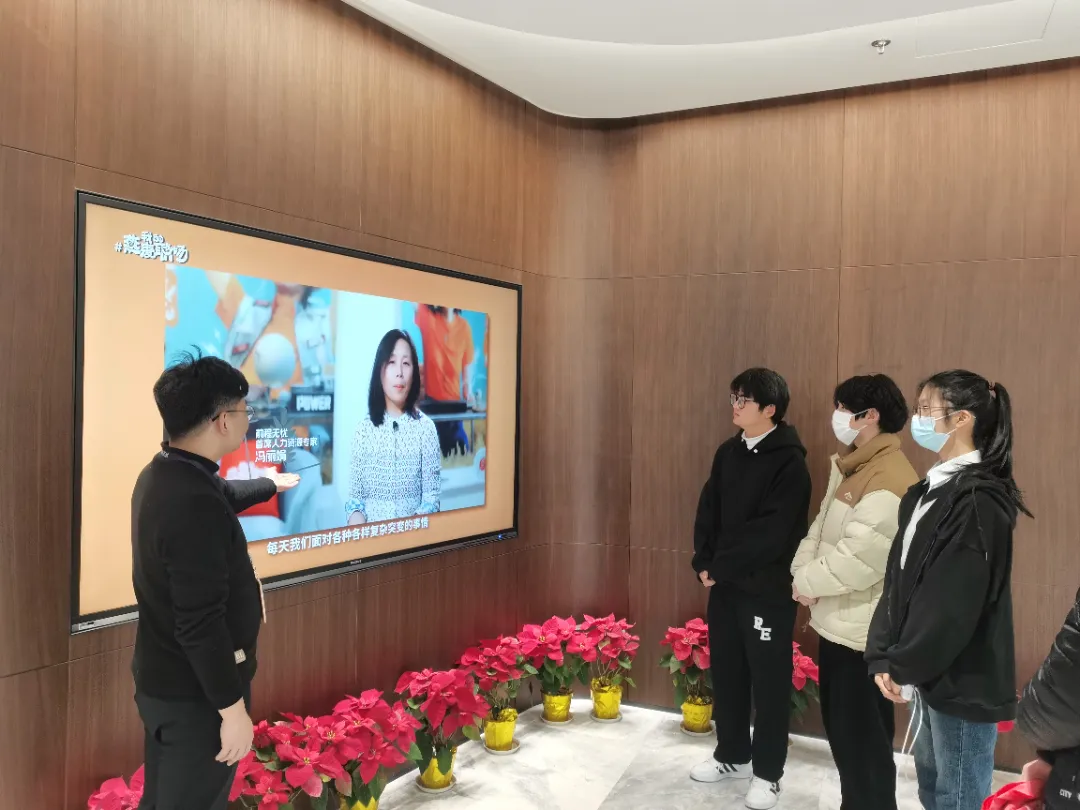 团队在公司对接工作人员的带领下进行公司参观。团队成员们了解到前程无忧是我国国内领先的网络招聘服务供应商,集合了专业人事顾问团队、网络媒体及先进的信息技术,在服务大学生线上就业方面经验丰富。 在参观完公司后,成员们针对公司的特点与工作人员进行交流访谈。在访谈过程中,进一步认识了新业态行业的活力,为大学生灵活就业提供了许多新思路。团队了解到前程无忧公司为促进大学生更好的进行线上就业开展的一系列措施,如通过人工智能精准定位大学生就业需求以提供满意的就业岗位、元宇宙数字沙盘测试帮助大学生线上理清自己感兴趣且合适的就业方向,为上海大学生线上就业提供了极大帮助。最后,成员们和专业人员还围绕新业态赋能上海高校线上就业的推进方案、未来展望、存在困难等问题进行了访谈及讨论。 通过本次实践,成员们对新业态赋能上海高校线上就业有了更为直观与深入的了解,体会到新业态在提升就业效率、优化人才匹配方面起到了关键作用,新业态赋能的线上就业在助力高校毕业生顺利融入职场方面效果显著。组员们深感技术进步对职业市场的巨大影响,也看到了上海高校在新业态背景下大学生充分、灵活就业的无限可能。