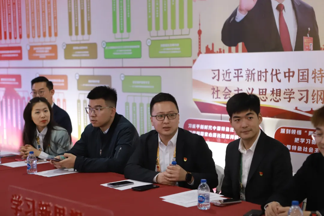 校党委办公室主任孙劼,党委学工部部长袁翔,临港产业园区工会副主席、临港集团团委副书记、临港集团进博会志愿者临时团支部书记郑晟骅,临港集团总部党委干事、进博会临时党支部书记吕东昇,上海自贸区联合发展有限公司、企业服务中心总监助理、团总支书记杨磊,我校团委副书记周雄才,专职团干部陈贝妮老师,临港集团、上海应用技术大学进博会志愿者临时党、团支部“小叶子”代表参加了联组学习。