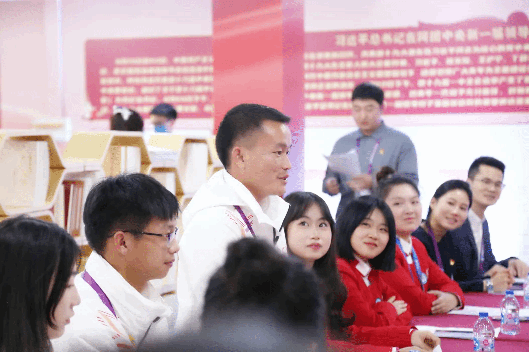 郭庆松参加联学活动,他表示,上应“小叶子”充分展现了新时代青年昂扬的自信与担当,希望大家继续以饱满的热情、奋发的姿态投身进博服务,展现一流形象;希望更多上应学子能成为“二刷”“三刷”的“小叶子”,以志愿服务绘就多彩青春底色,让个人成长与国之大者“双向奔赴”。
